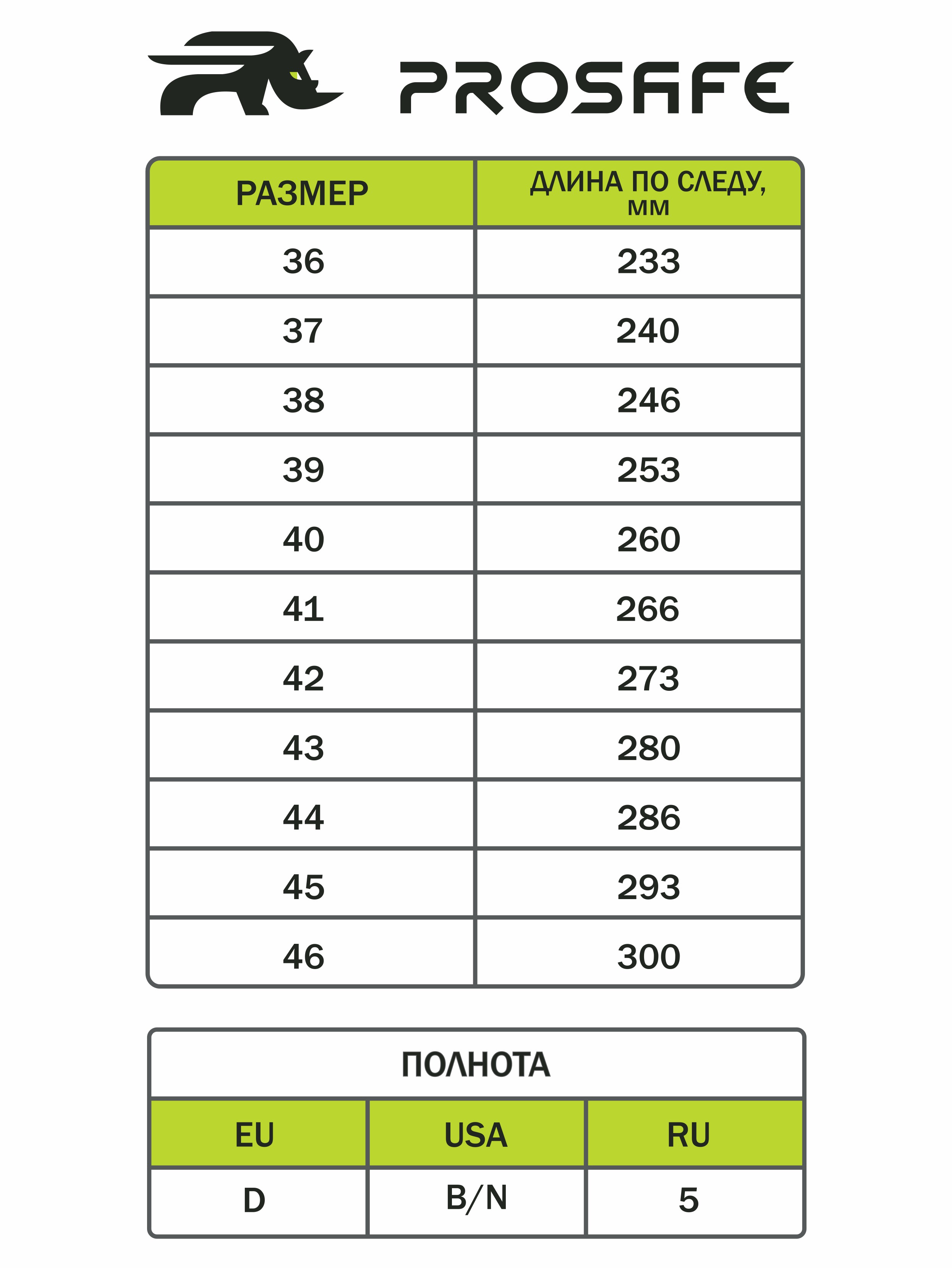 Таблица размеров